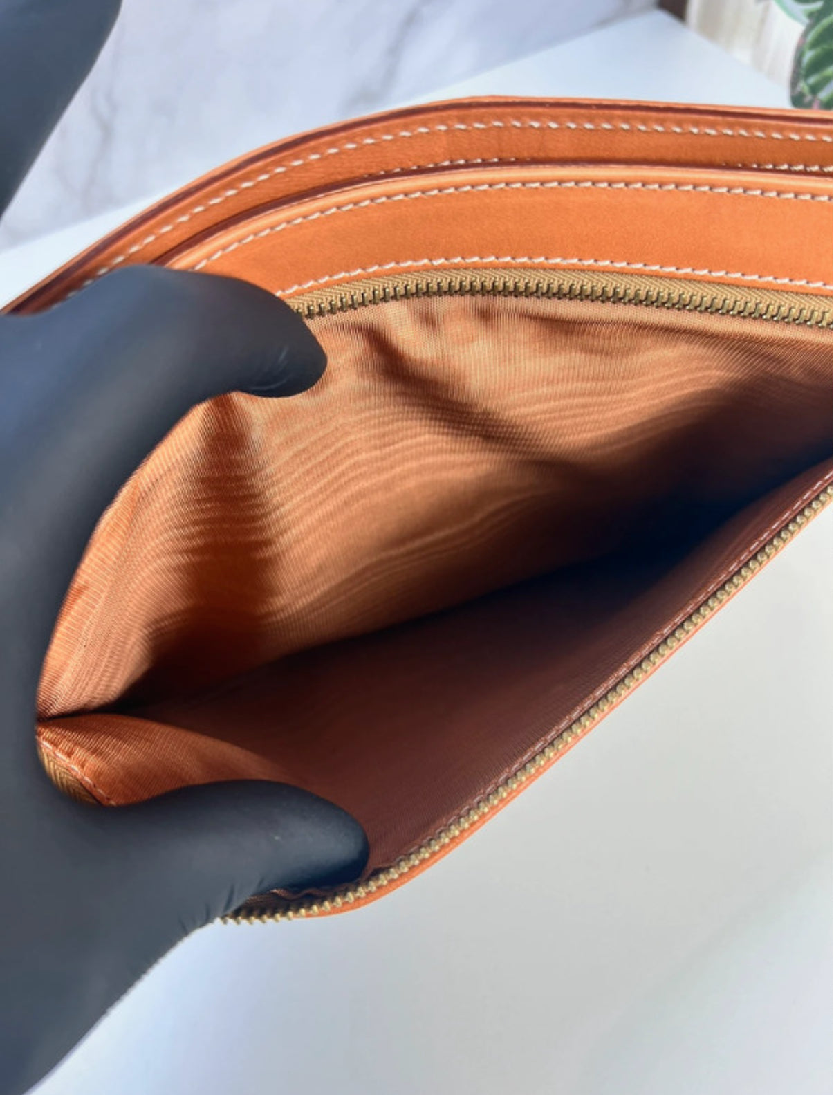 Doublure cuir lisse camel en très bel état, poches propres. Zips Riri fonctionnels.