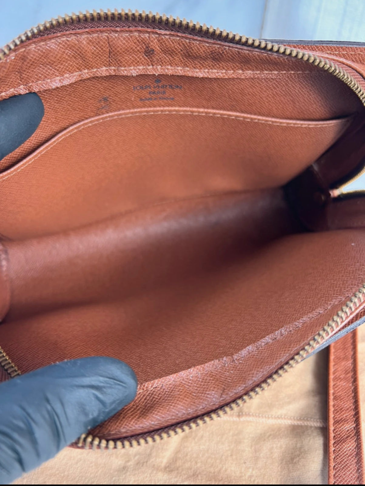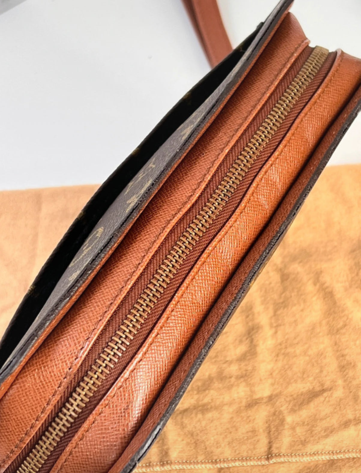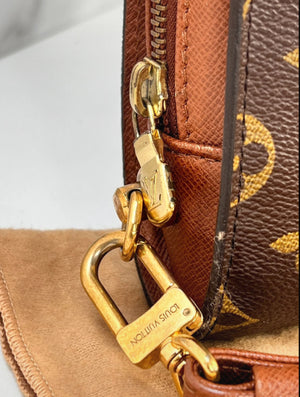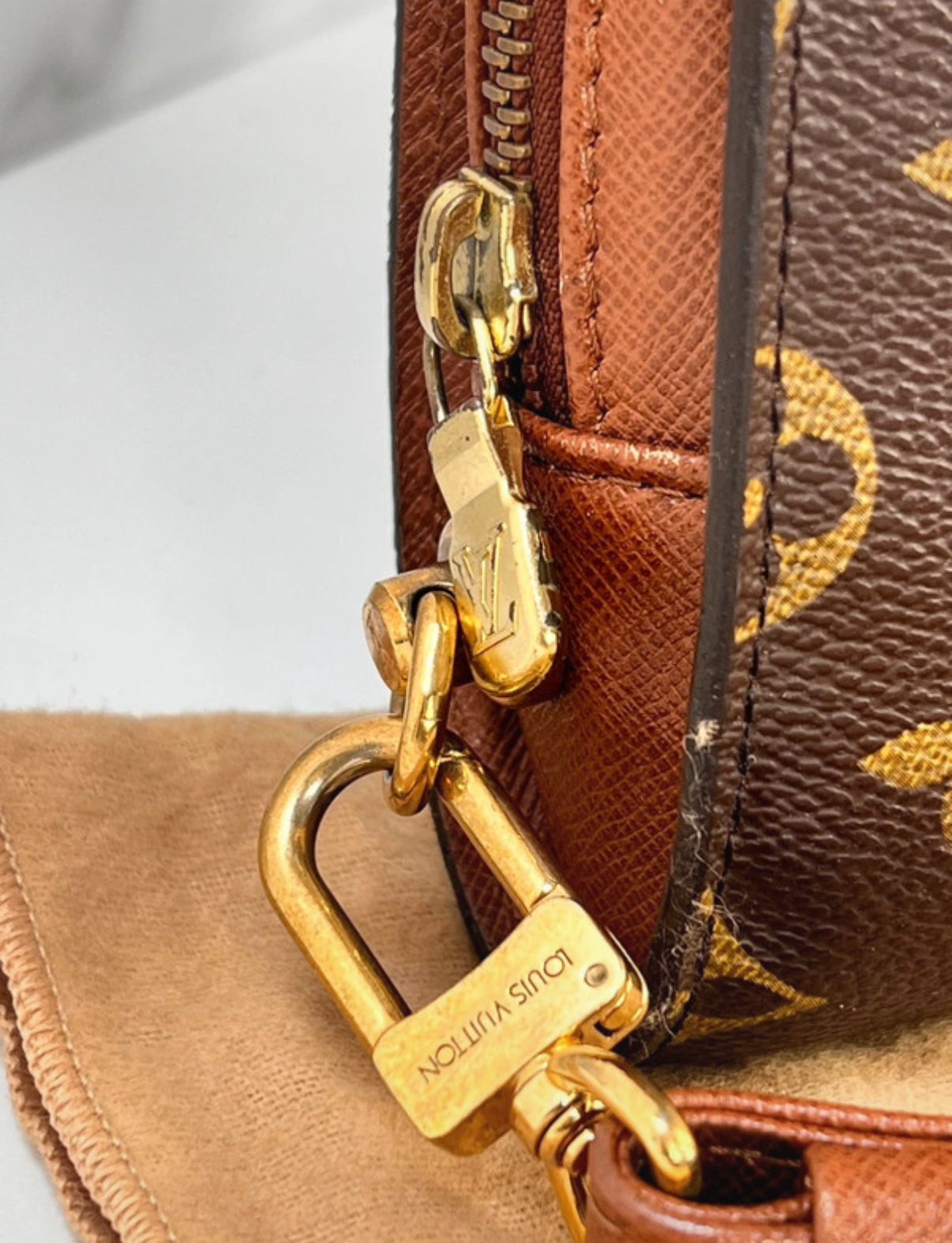 Superbe pochette Louis Vuitton Orsay en toile Monogram avec dragonne latérale amovible.