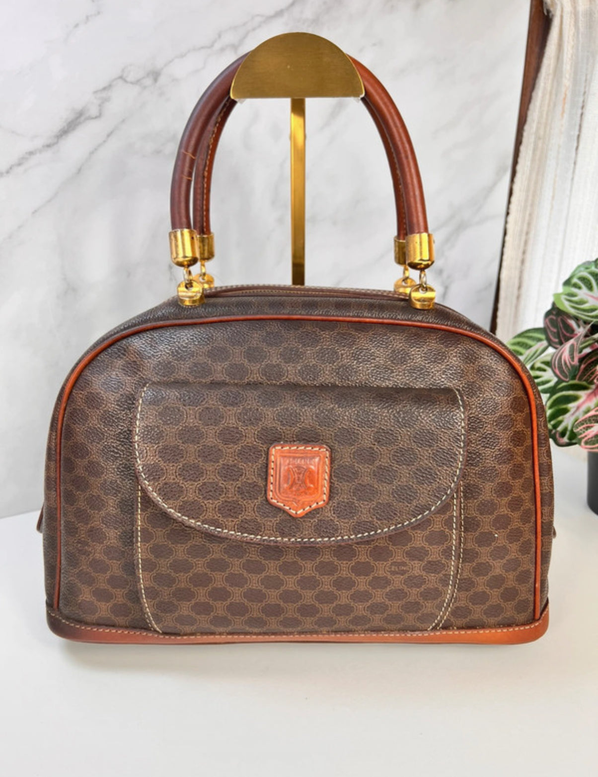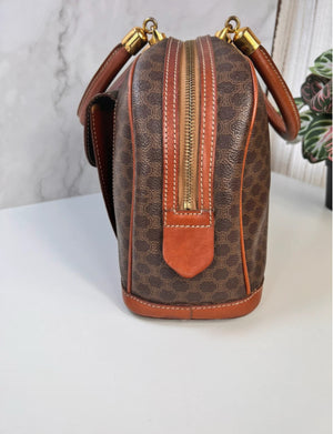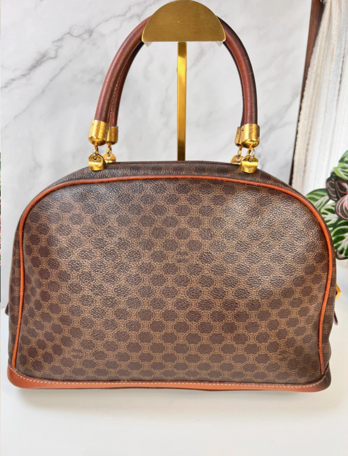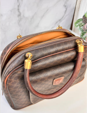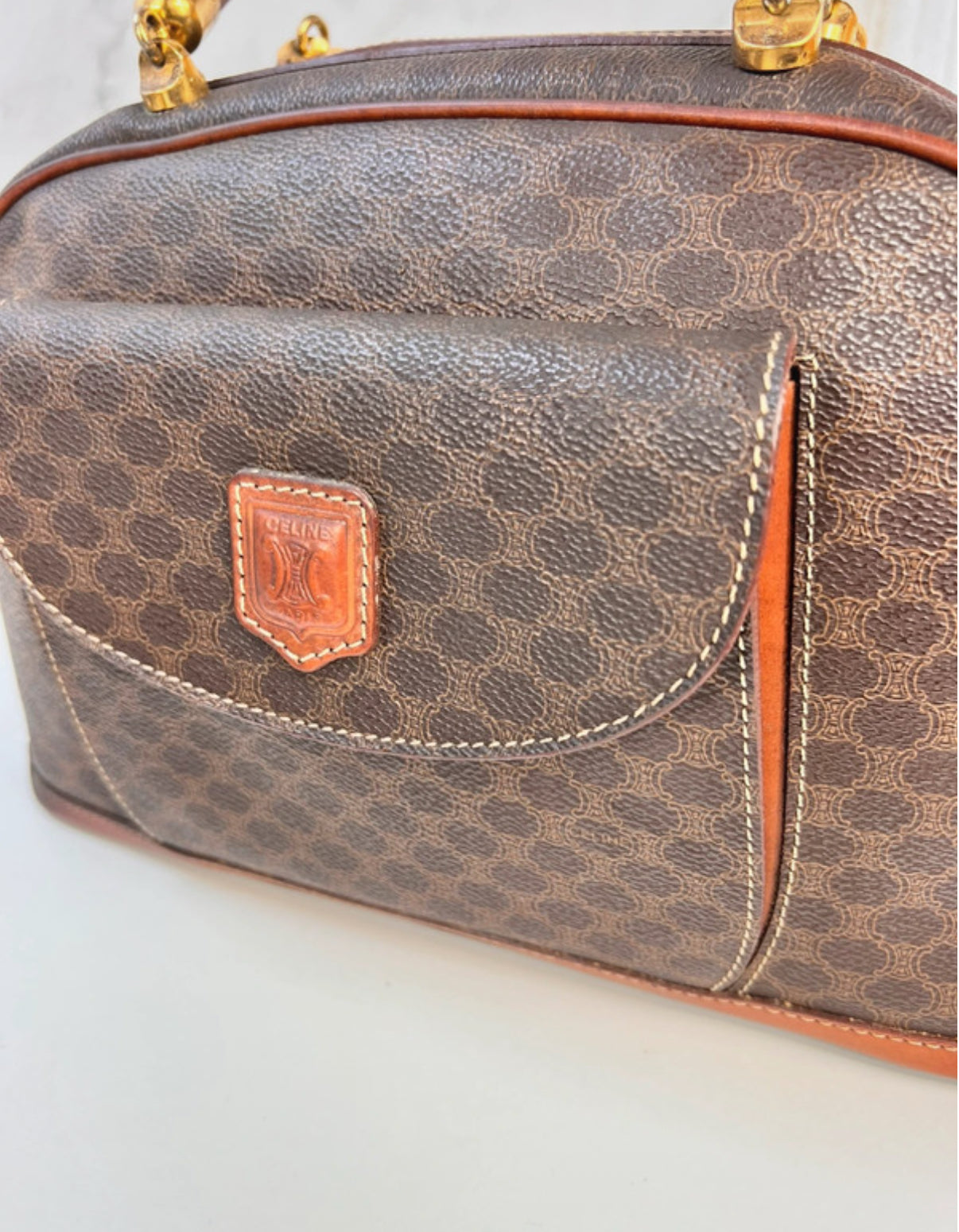 Authentique sac Céline Macadam vintage en très bon état général, modèle Boston avec anses rigides.