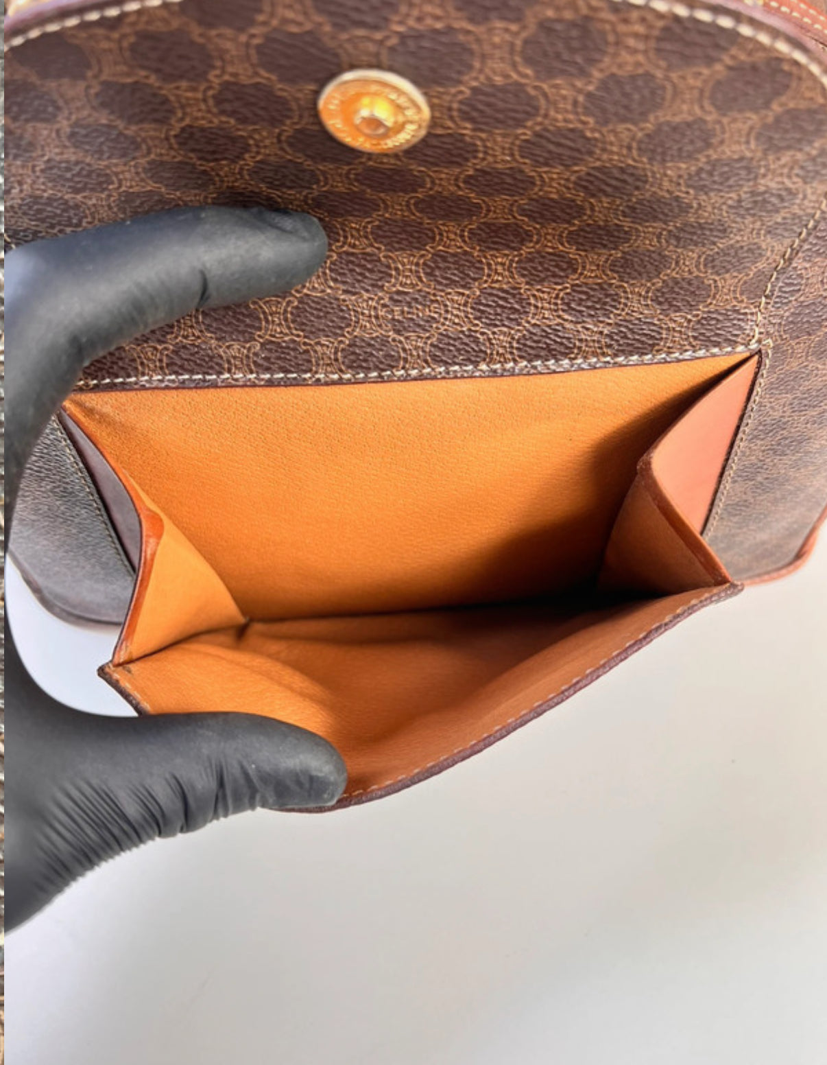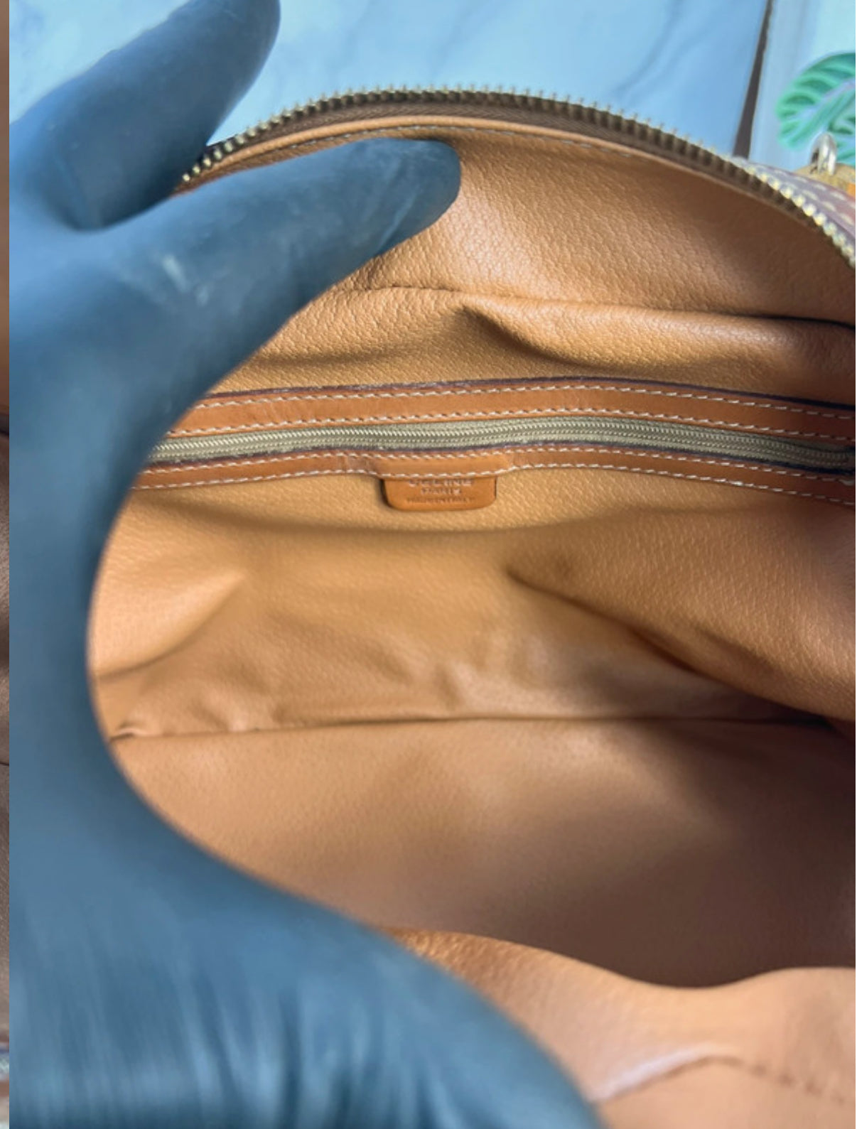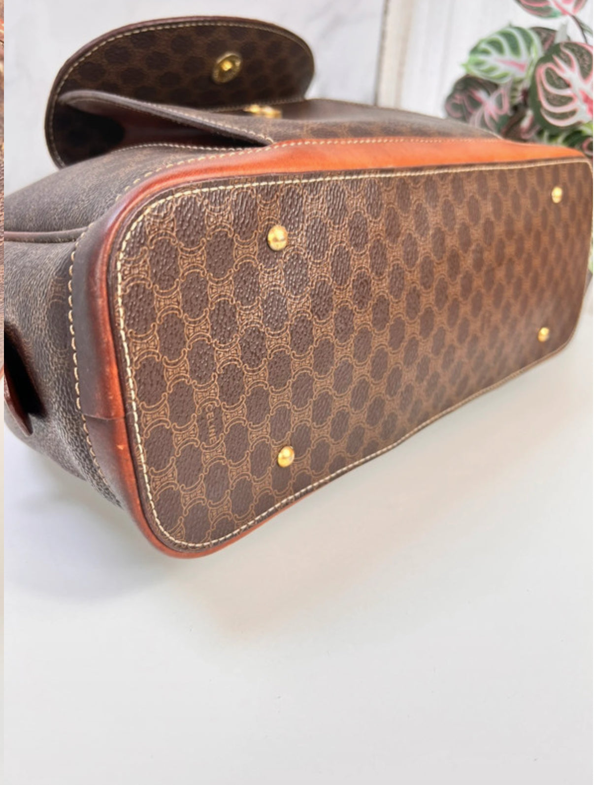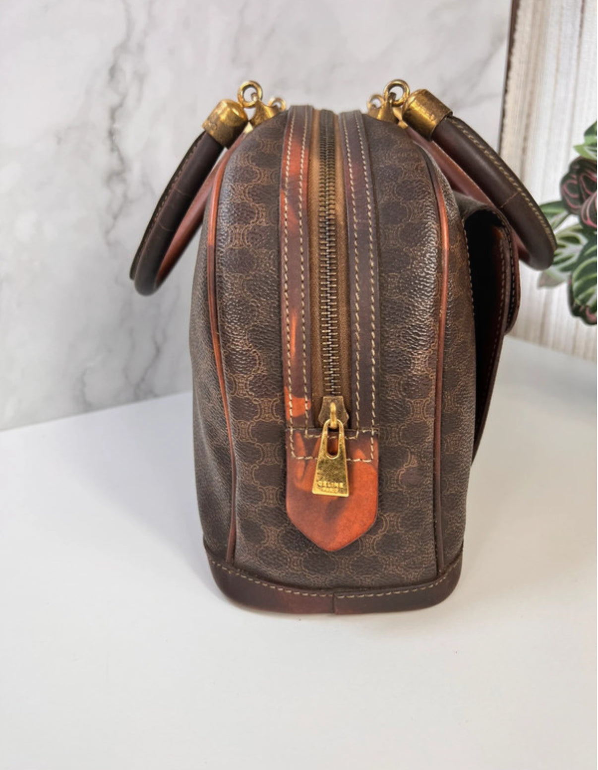 Authentique sac Céline Macadam vintage en très bon état général, modèle Boston avec anses rigides.