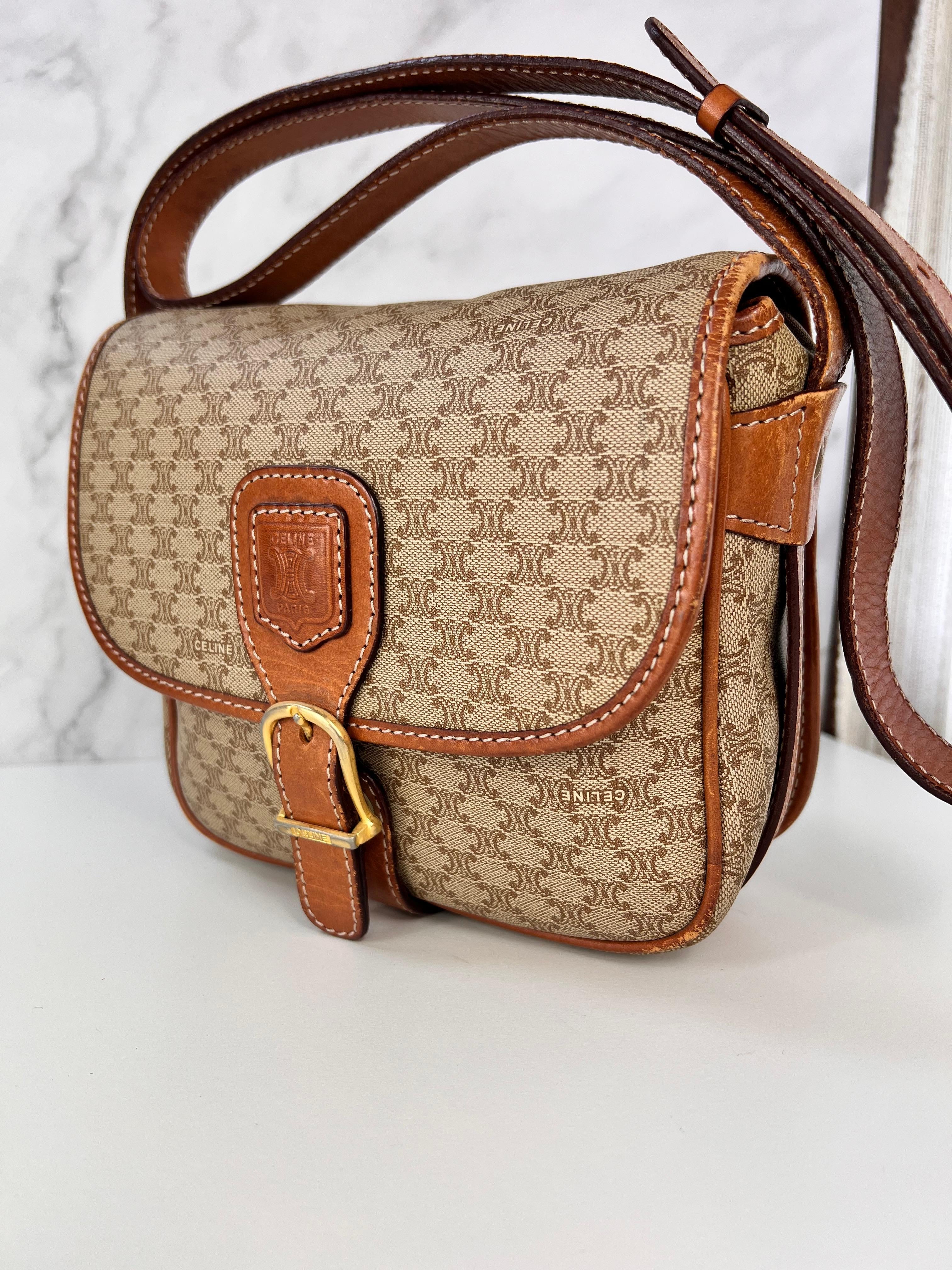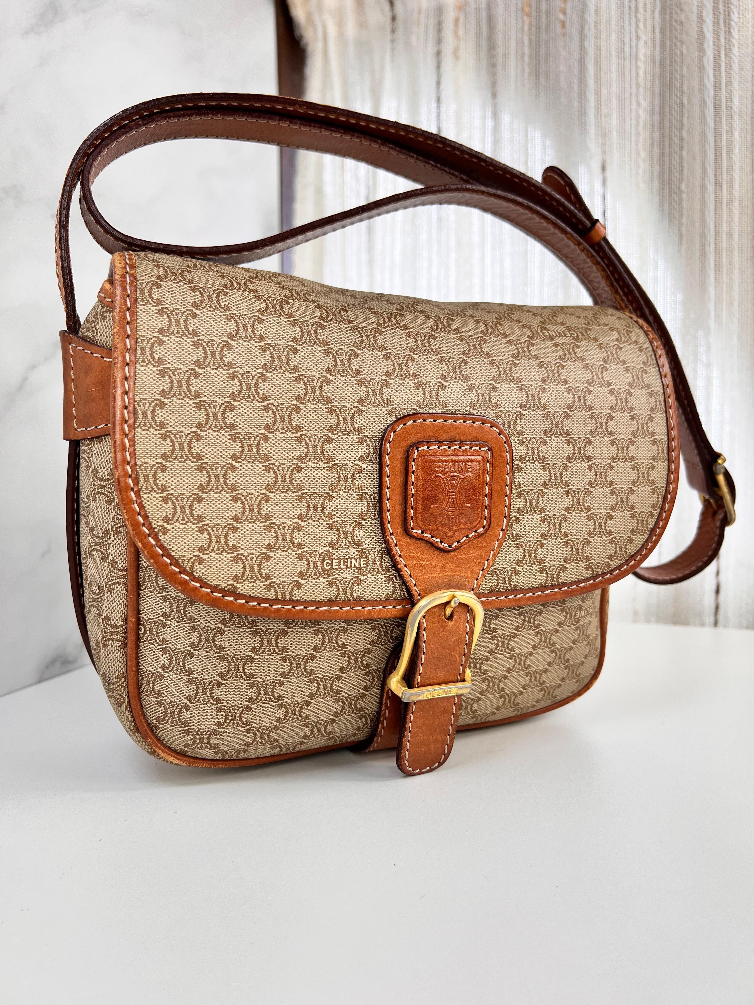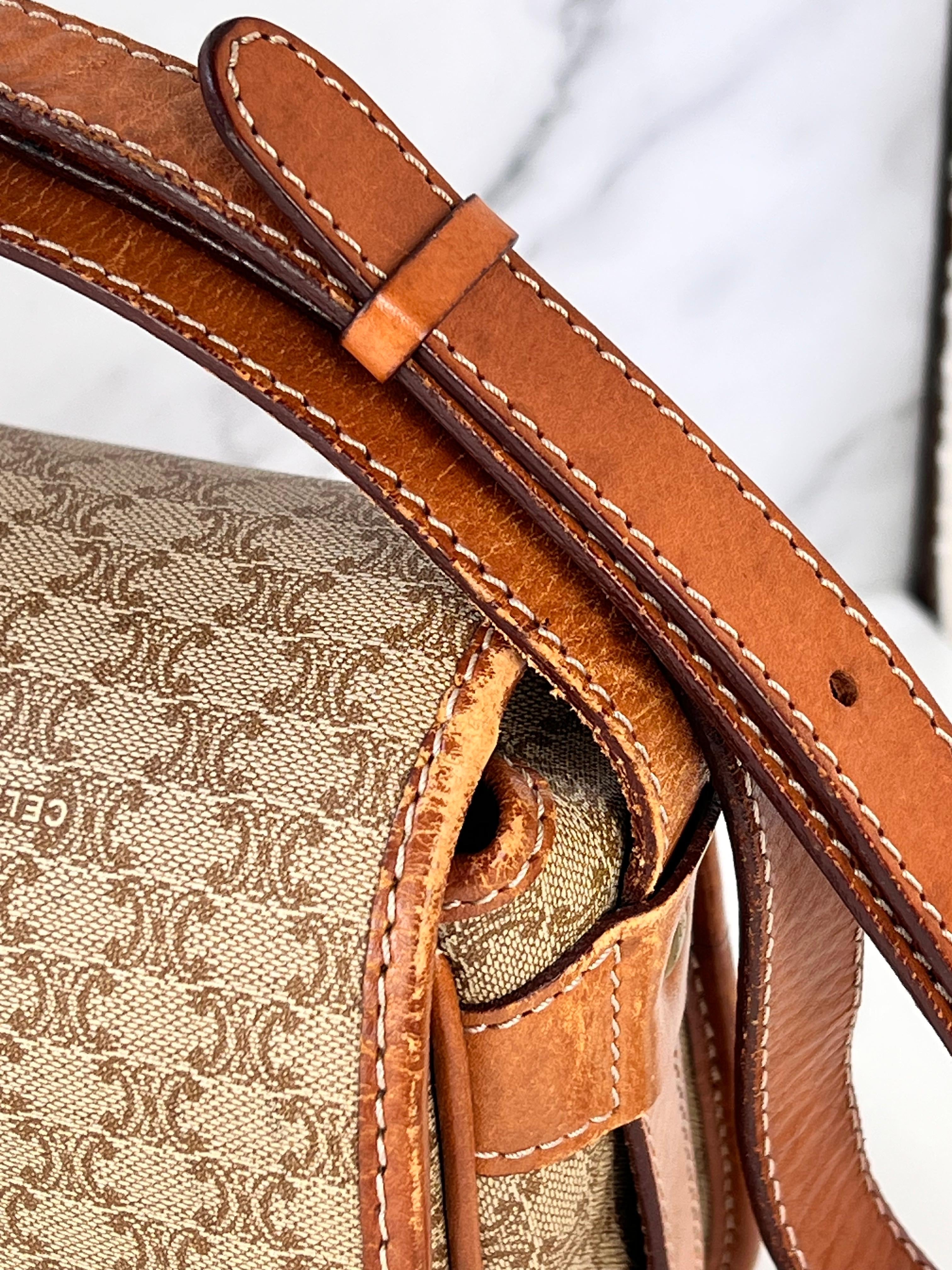 Pièce iconique de la maison Céline, ce sac bandoulière en toile Macadam et cuir naturel incarne parfaitement l'élégance parisienne intemporelle. Un bijou vintage à la fois chic et pratique, devenu ultra recherché !