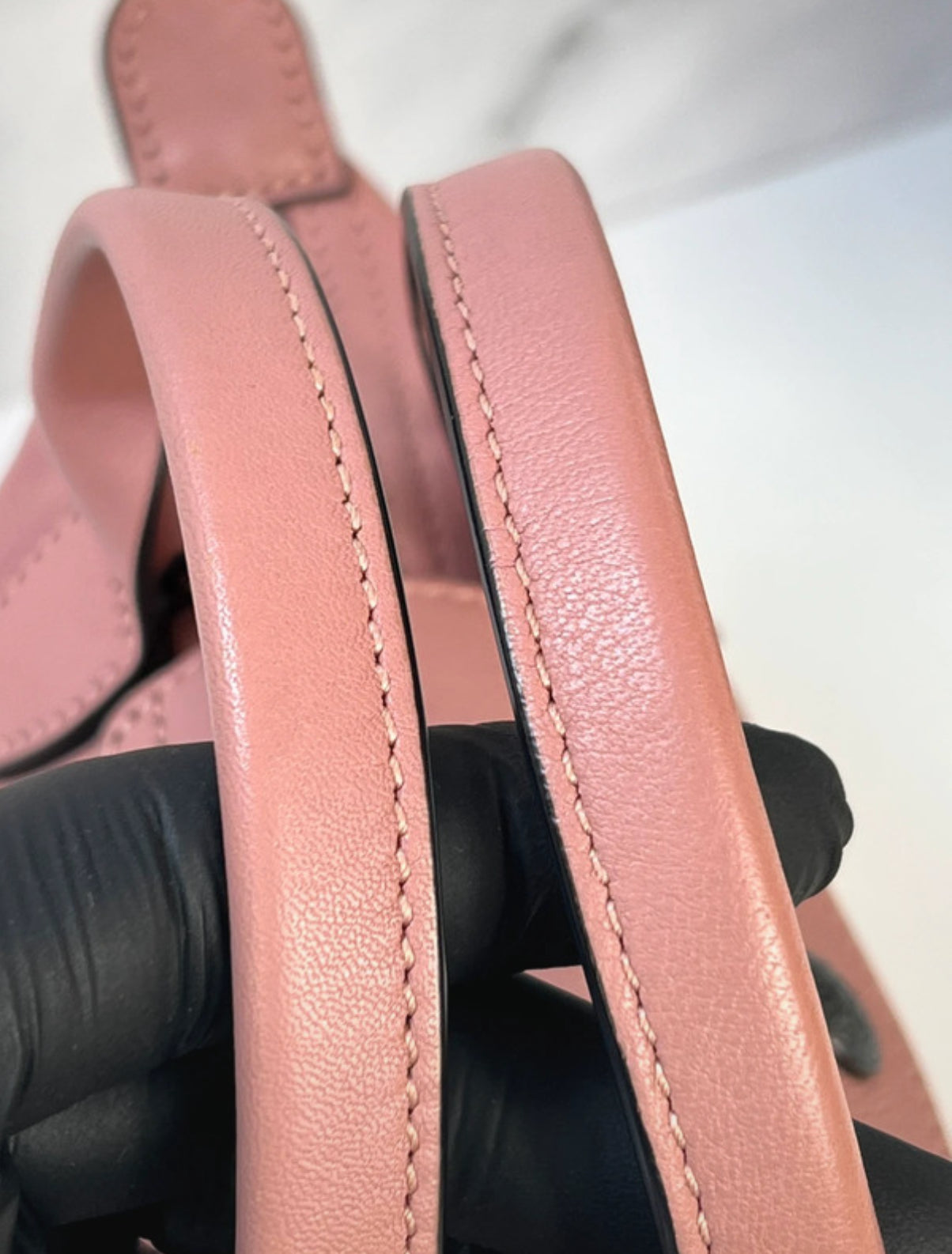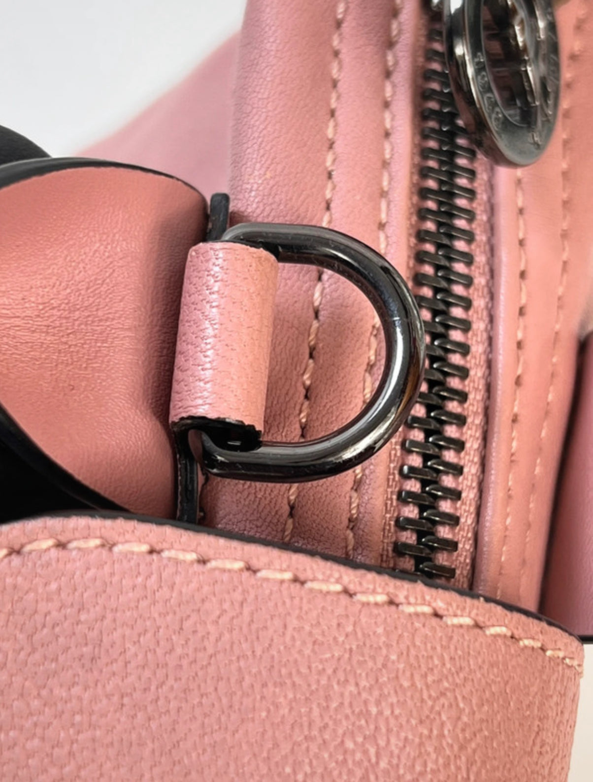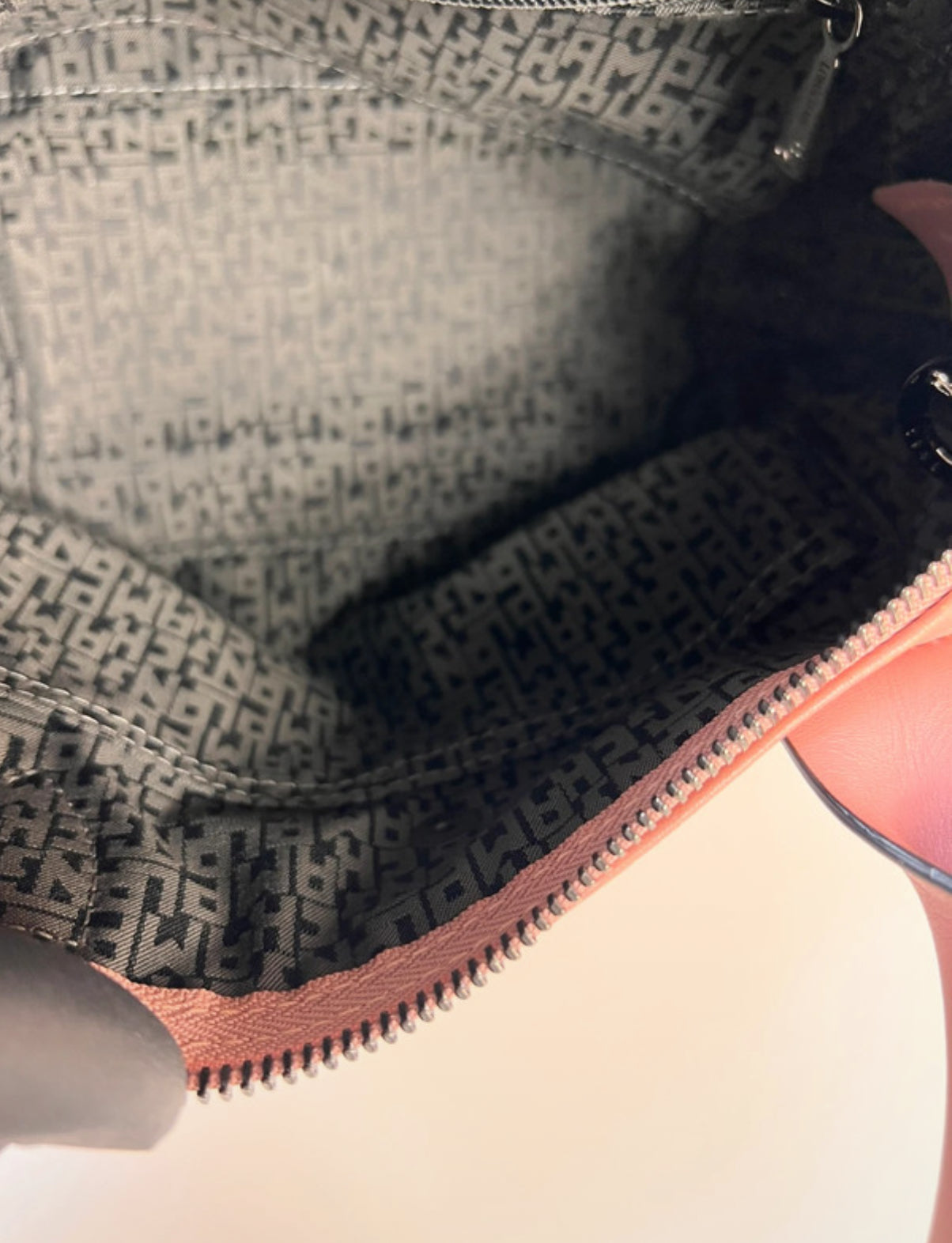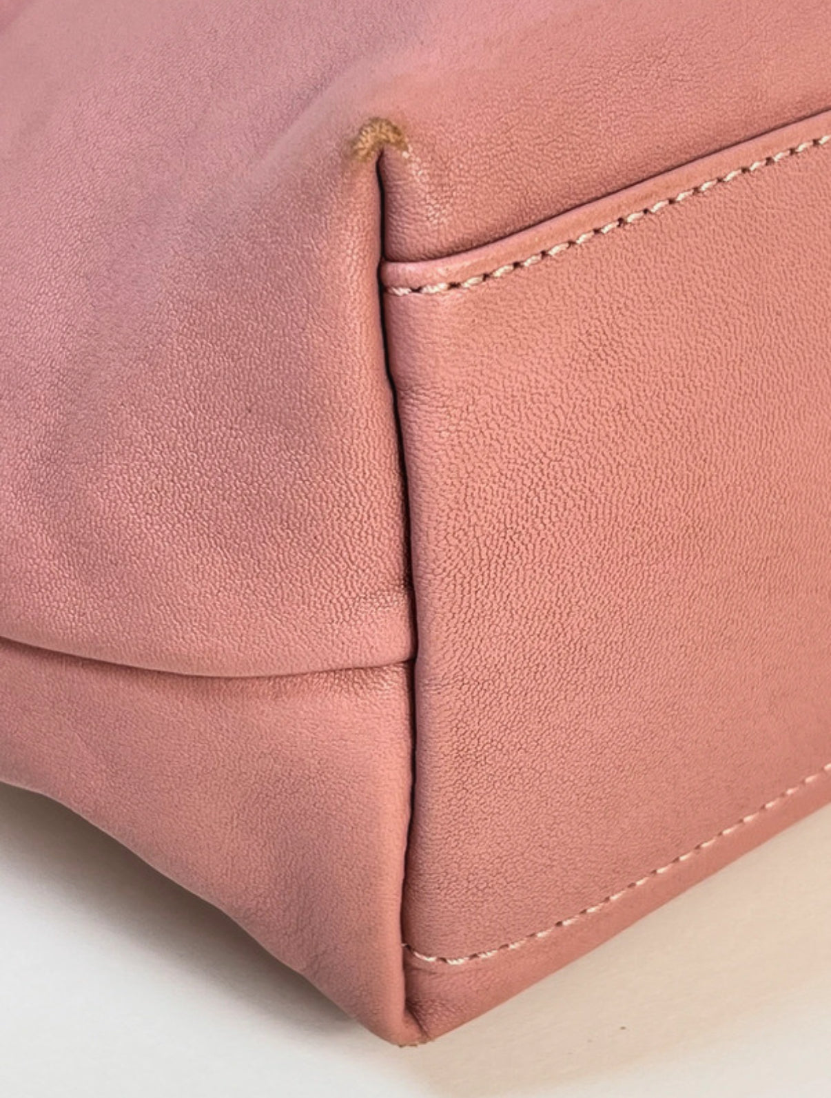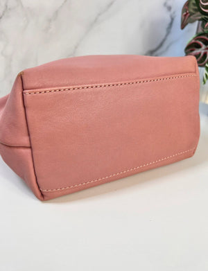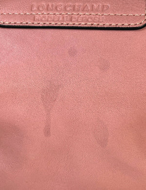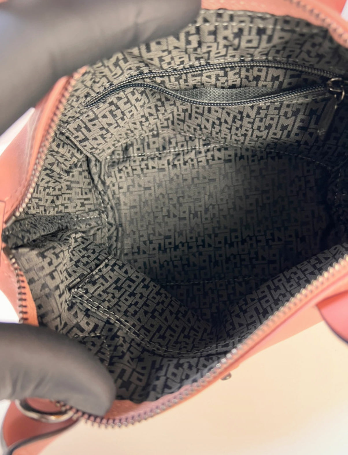 Authentique sac Longchamp Le Pliage Cuir Small en cuir rose avec bandoulière amovible.