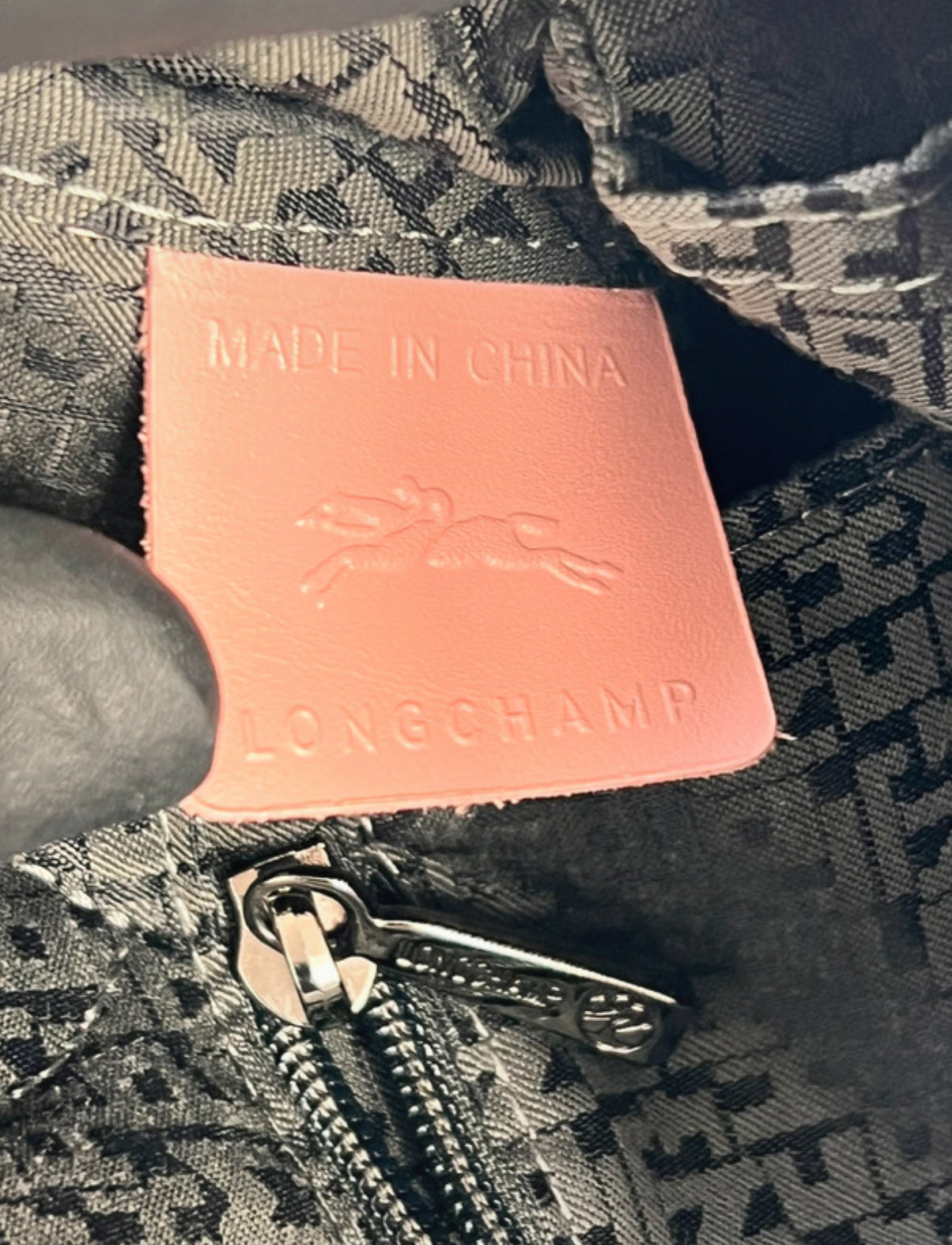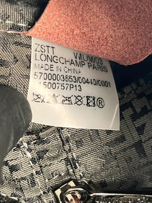 Toile jacquard Longchamp propre, sans taches majeures. Une poche zippée + une poche plaquée.