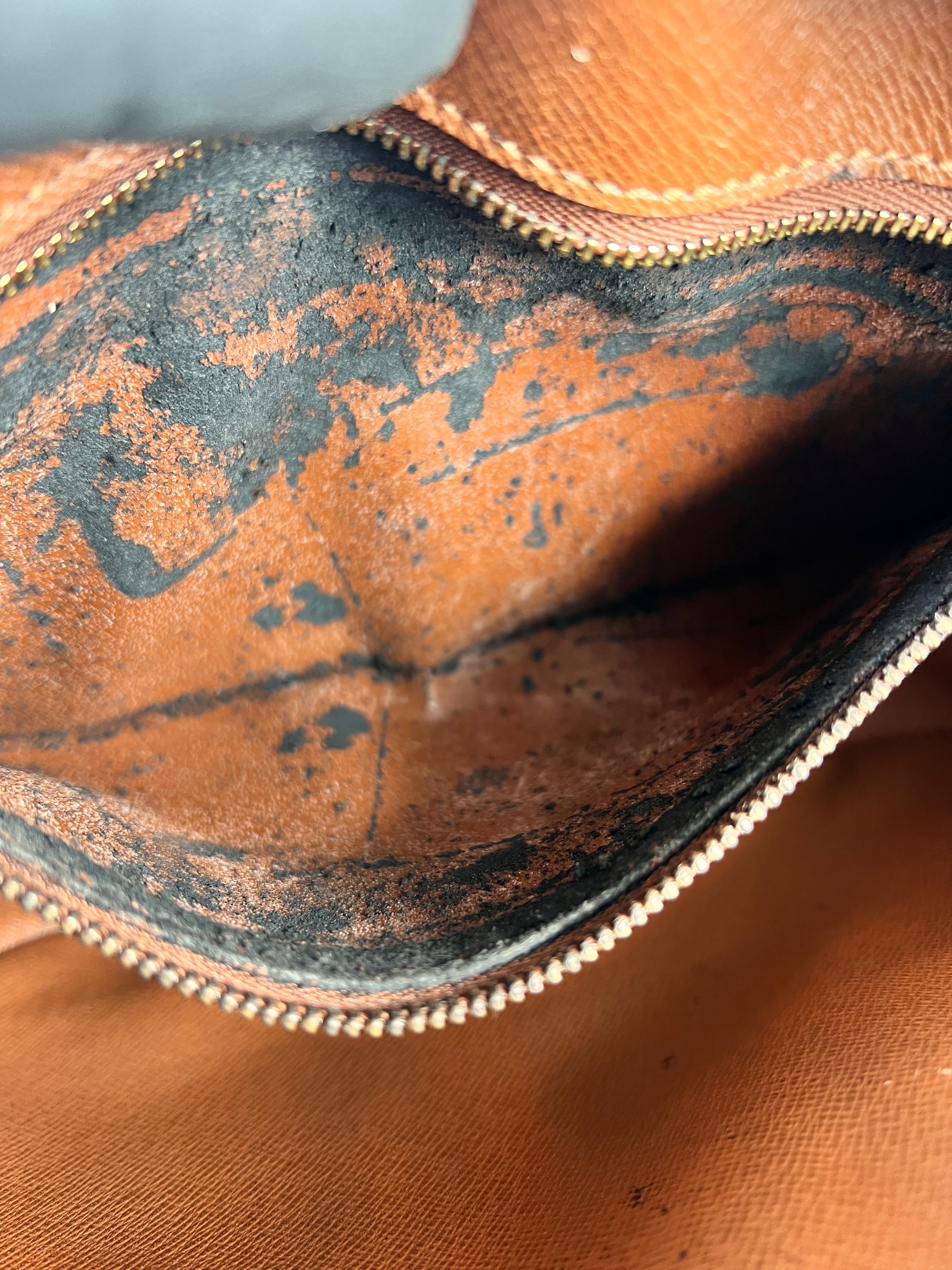 Traces d’usure marquées : décoloration, usures plus prononcées, tâches visibles ou intérieur abîmé. Produit authentique et utilisable, mais destiné aux amateurs de vintage assumé.