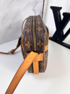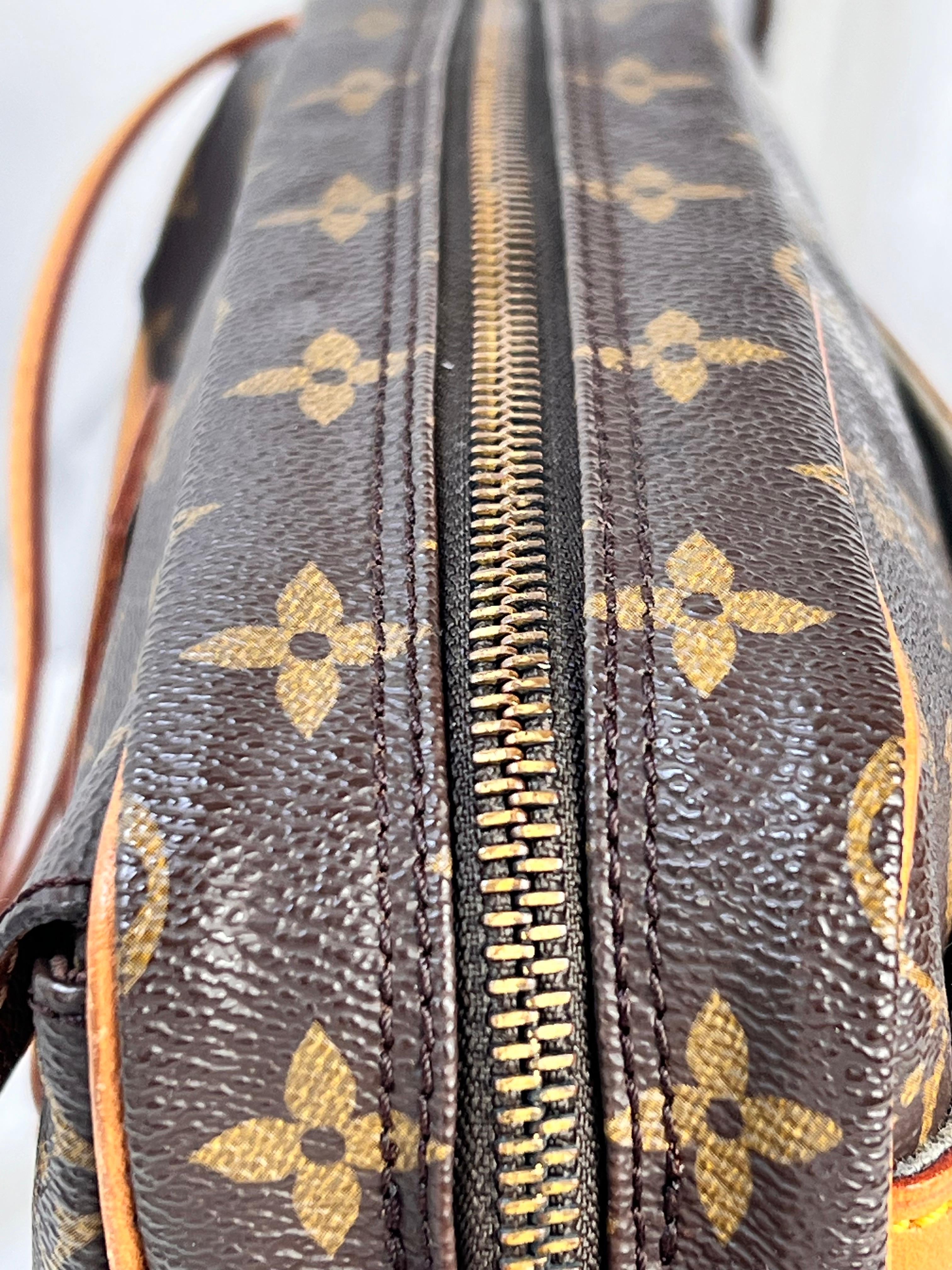 Ce sac bandoulière en toile Monogram et cuir naturel incarne tout le savoir-faire et l'élégance intemporelle de la marque.