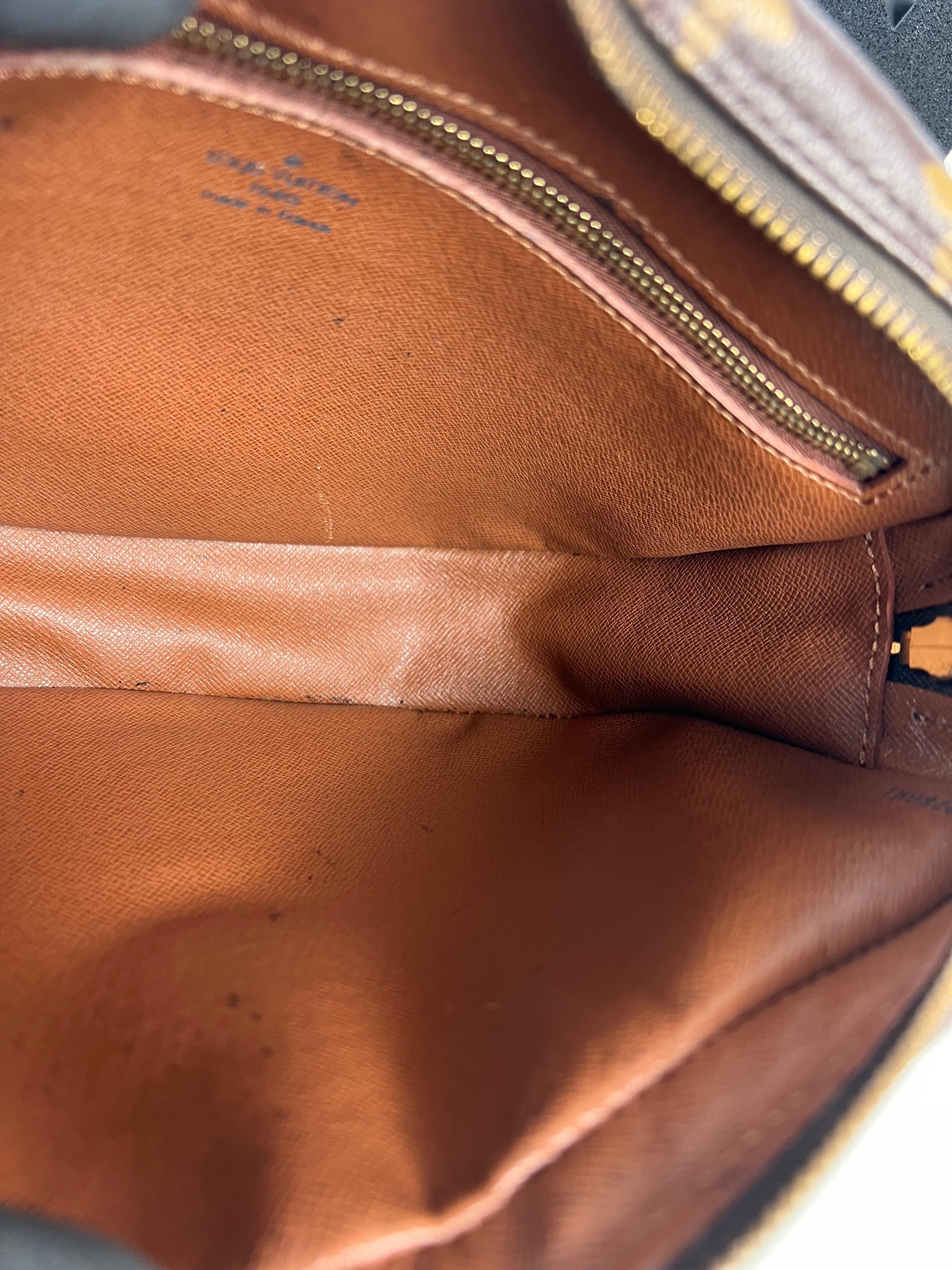 - Matières : Toile enduite Monogram & cuir naturel vachetta