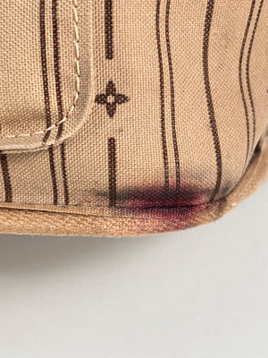 - Tache plus marquée dans le fond du sac et sur un angle de la doublure intérieure